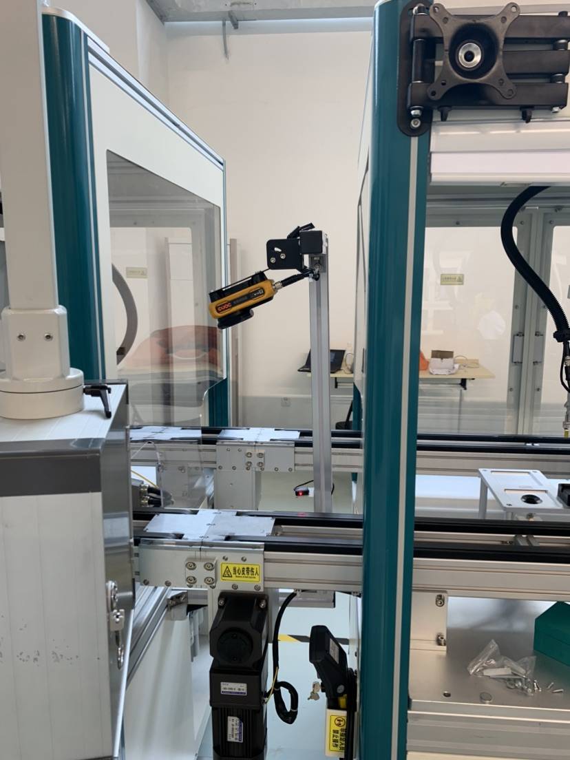 某客户在生产过程中,需读取产品载具上的一维码,并将载具上的产品信息与加工信息关联后上传至MES系统。但因产品一维码粘贴方向不一、读码器安装空间小等限制,在读码过程中面临着以上3大难题。